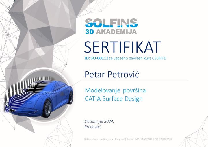 CATIA SURFACE DESIGN - Osnovna obuka za 3D modeliranje površina u CATIA V5 (CSURFD)