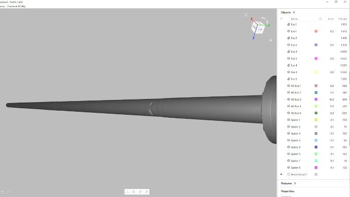 Ovaj skener nam služi da brzo skeniramo ceo objekat zahvatajući površine i po 400mm u jednoj sekundi - ovim skenerom možemo dobiti i odličan nivo detalja ali taj nivo često nam nije dovoljan za specifične detalje - tekst, ugravirane serijske brojeve, rupe i otvore, navoje, specifična oštećenja kao u ovom slučaju, itd.