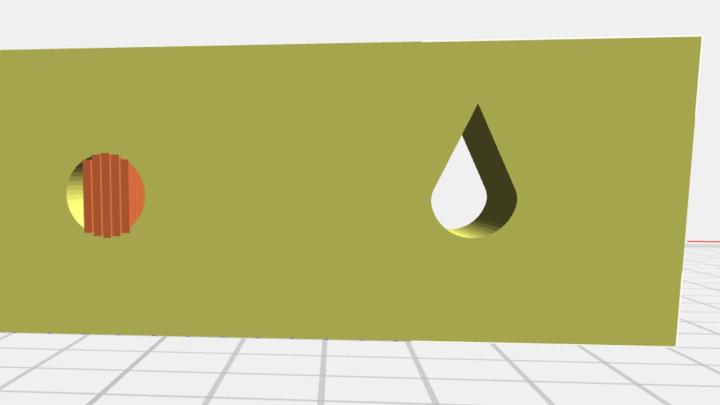 Sledeći važan korak je optimizacija samih rupa, proreza, šupljina... Najčešće se svi otvori crtaju u kružnoj formi ali to nije napovoljniji oblik za 3D štampu je iziskuje potpore. Gde god je moguće, najbolje je krug zameniti oblikom kapi, pored prethodno pomenutie štednje vremena i materijala, u komplesnim prorezima ne bi bilo ni moguće kasnije uklanjanje potpora.