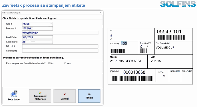 Na ovaj način, Serialized Label Printing, Lot & Serial Tracking, Substitute BOMs, Material Allocation, Variance Reporting, Utilization/OEE i Operator Log In/Out nisu izolovane funkcije, već slagalice koje dopunjuju Production control and reporting sliku: od ciklusa na mašini i logovanja čoveka, preko serijskog broja kutije, do analize varijansi i OEE po ćeliji.