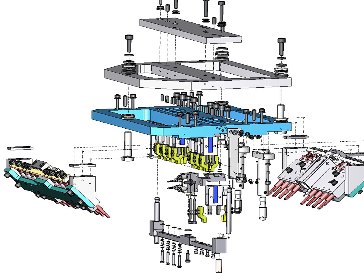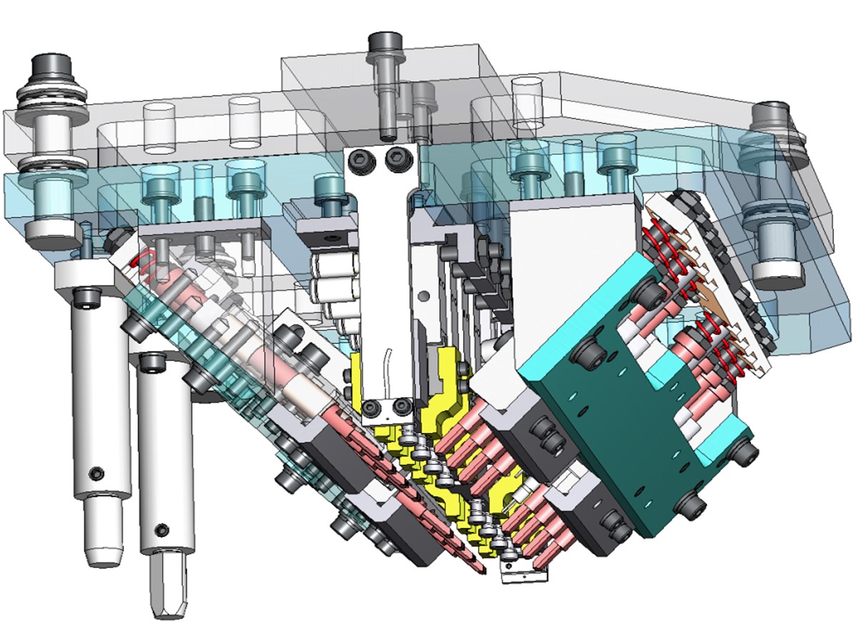 Gripper head – holds and transfers 8 components, between an assembly machine and overmolding machine.