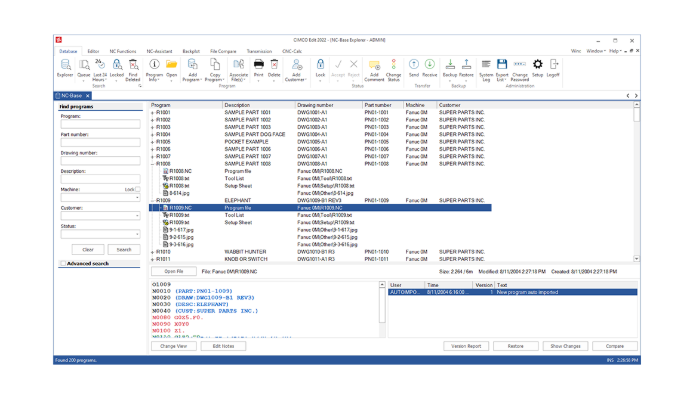 - efikasno upravljajte programira, podprogramima, odnosima sa drugim programima (parent/child relationships) i u integraciji sa SolidSHOP DNC jedan klik je dovoljan da glavne programe pošalje i linkuje uz podprograme direktno na CNC mašinama - na svim mašinama istovremeno