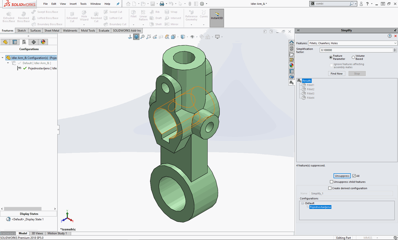Simplify Utility – ubrzano kreiranje pojednostavljene konfiguracije delova ili sklopova zarad kreiranja analiza delova. Alat će prepoznati feature-e koji se nalaze ispod određene granice za veličinu ili zapreminu. Postoji mogućnost i da se neželjeni feature-i uklone zarad pojednostavljene konfiguracije