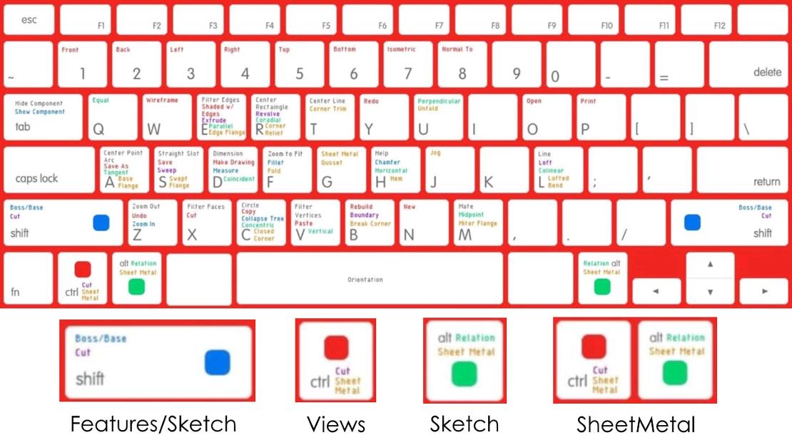 Klikom na S taster na tastaturi korisnici mogu pristupiti velikom broju SolidWorks funkcija. Prikaz funkcija zavisi od radnog okruženja SolidWorks softvera. Potrebno je napomenuti i da korisnik može konfigurisati prikaz alata na S tasteru. Na slici iznad prikazani su alati koji su dostupni sa osnovnim SolidWorks podešavanjima.