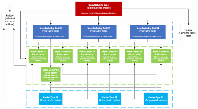 U DelmiaWorks‑u Manufacturing Configuration, Manufacturing Type, Manufacturing Cell, Center Type, Work Center i BOM su način da se realni procesi, mašine i linije fabrike prevedu u digitalni model na kome rade MRP, Work Orders (radni nalozi) , RealTime i costing.