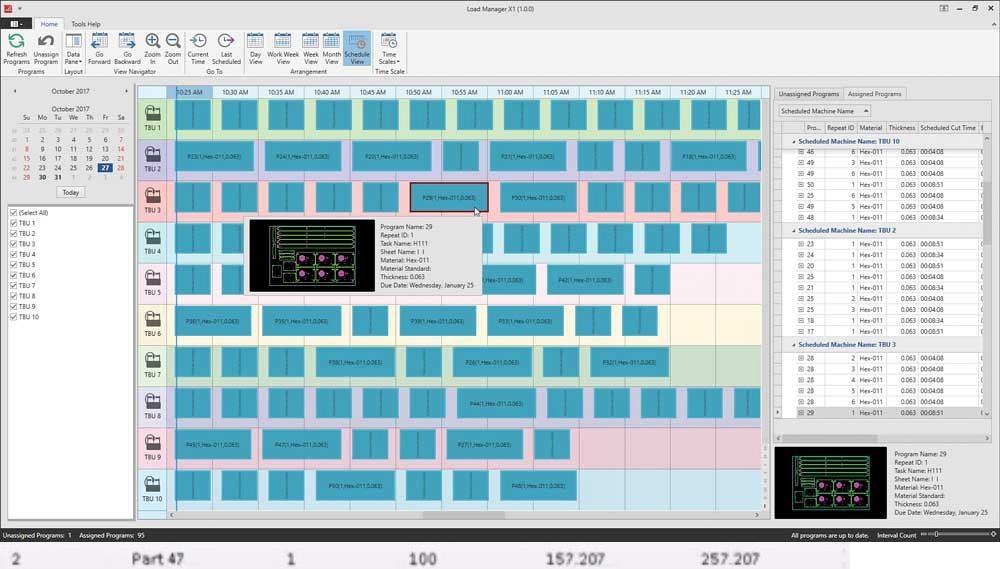 Za ovu namjenu se koristi aplikacija Load Manager koja podržava sve Sigmine aplikacije za sječenje SigmaNest, SigmaTube i SigmaCTL. To znači da će programi i poslovi biti prebačeni na mašine i da će softver voditi računa da sve mašine budu podjednako opterećene.